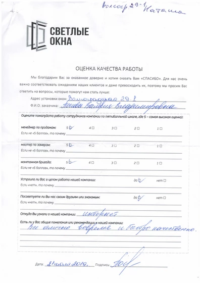 "Заказывали окна для коттеджа в компании ООО «Светлые окна». Требовались нестандартные и очень большие, поэтому искали фирму, которая профессионально делает остекление домов и коттеджей. «Светлые окна» выбрали за то, что у них нет торговой наценки – они производители, поэтому даже наш очень большой объем остекления вышел довольно бюджетным. Если ищете, где купить пластиковое окно для коттеджа недорого – смело обращайтесь в ООО «Светлые окна». Кроме цены могу отметить еще и мастеров – ребята сделали все очень быстро и аккуратно. Кстати, мусор убрали и даже увезли с собой, потому что мы заказали установку и уборку «под ключ». Претензий никаких нет."